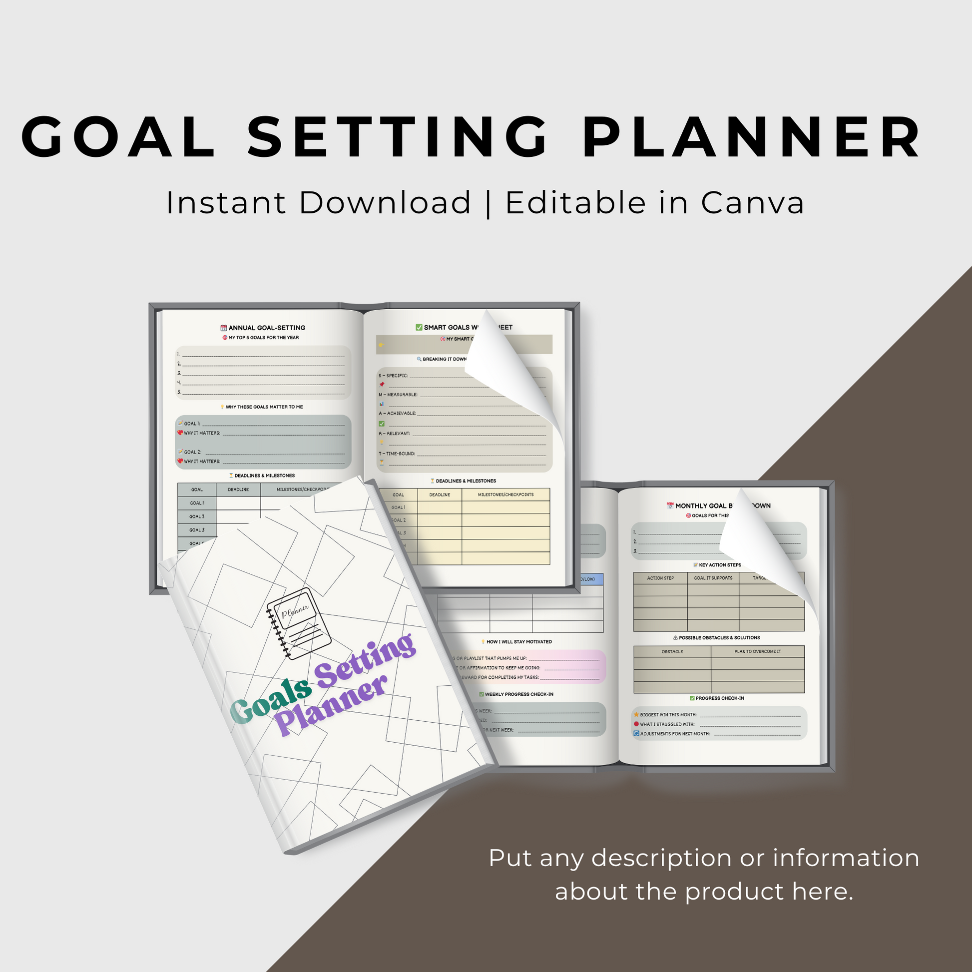 Stay on track with our comprehensive Goal Setting Planner. Designed with proven productivity frameworks, this planner helps you transform aspirations into achievable milestones. Features dedicated sections for long-term vision planning, quarterly objectives, monthly targets, and daily action steps. The structured approach eliminates overwhelm and increases follow-through on your most important goals.