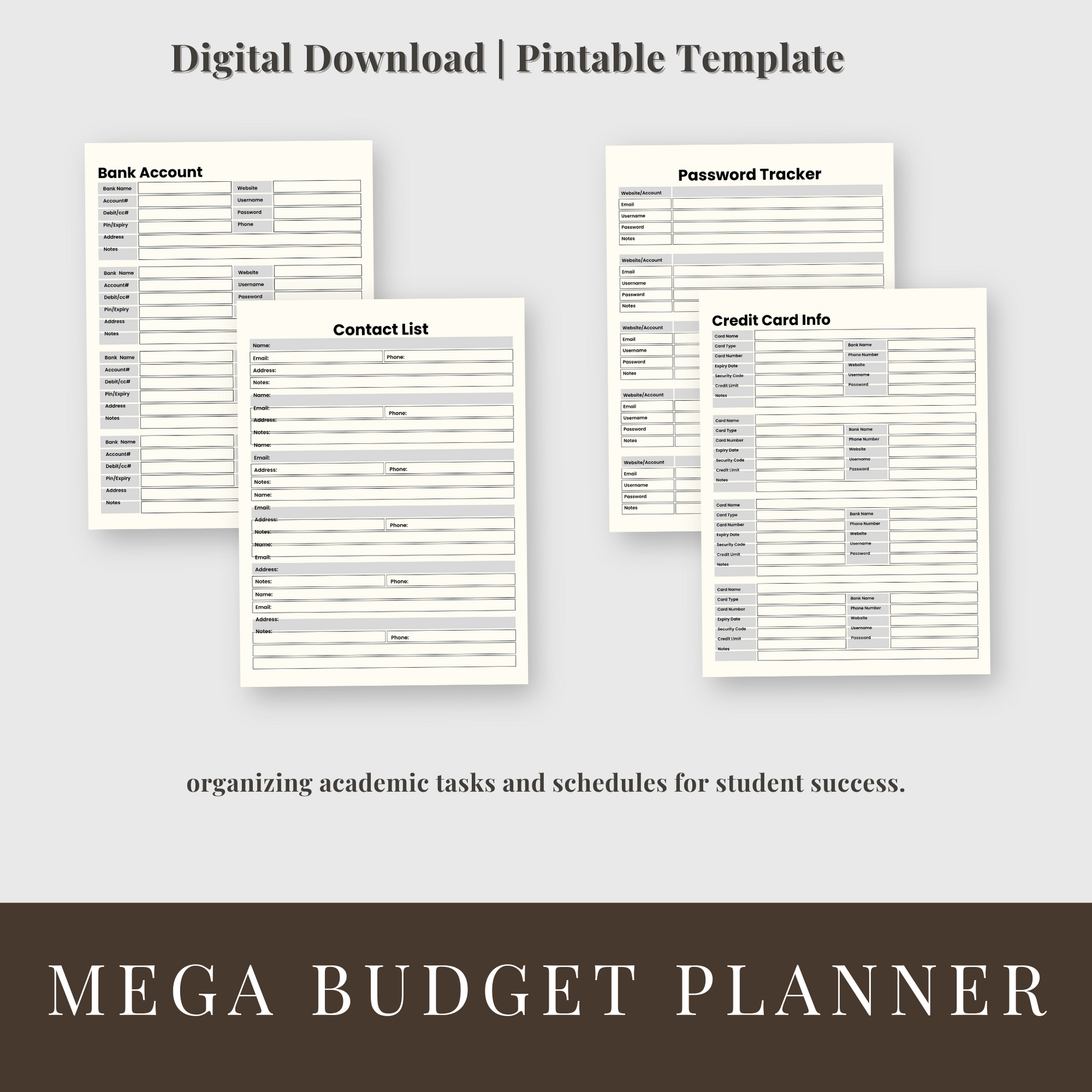 Our comprehensive Budget Planner is designed to transform your financial management approach. This meticulously structured tool helps you track expenses, set achievable savings goals, and identify spending patterns that impact your financial health. By implementing proven budgeting techniques, you'll gain control over your finances and develop sustainable habits that lead to long-term financial stability. Perfect for both beginners and experienced budgeters seeking a systematic approach to wealth building.